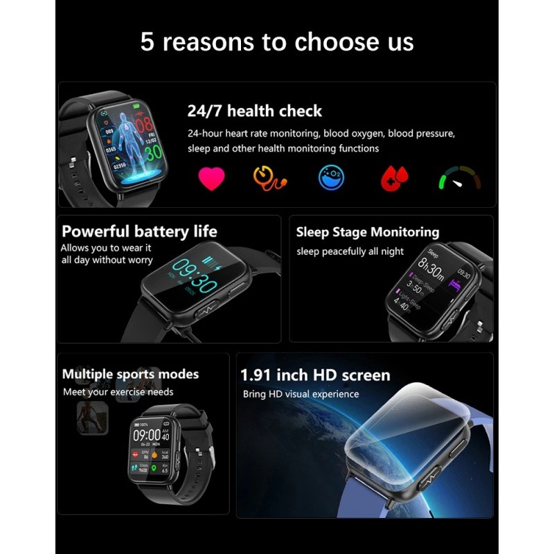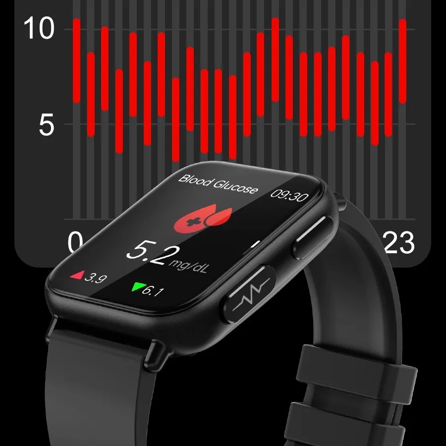 Non-invasive blood glucose, ECG, dual PD dynamic continuous heart rate collection + 1.91-inch full touch screen, ECG function, AI medical diagnosis, temperature monitoring, blood oxygen monitoring, respiratory rate.