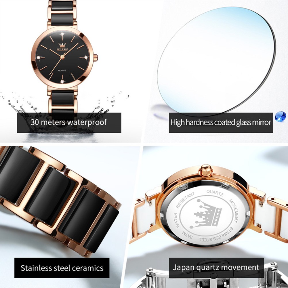 OLEVS 5877 High Quality Japanese Movement Japan Quartz Women Wristwatches Waterproof Ceramic Strap Fashion Watch for Women