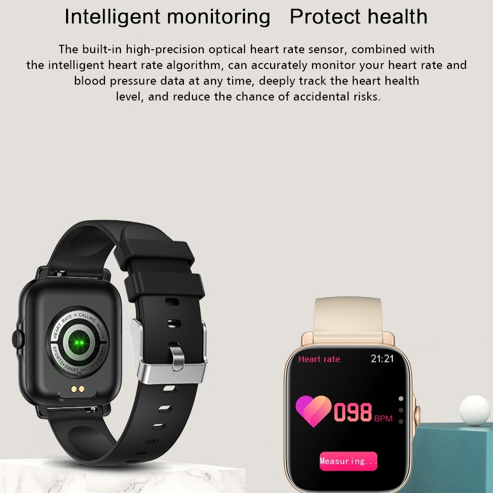 Main Functions: Custom Watch Face(wallpaper),Bluetooth call,Bluetooth music control,Call reminder,SMS reminder,Social App push notification(Facebook,Whatsapp,Twitter...),Heart rate/Blood pressure/Blood oxygen monitor,Sleep monitor,Multiple sport modes,Alarm clock,Stopwatch,Calculator,Calendar,Weather,Sedentary reminder,Look for phone...