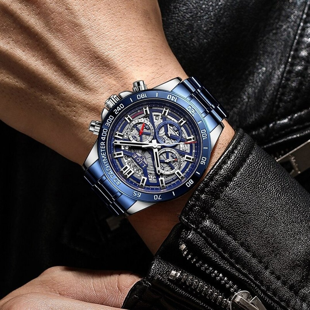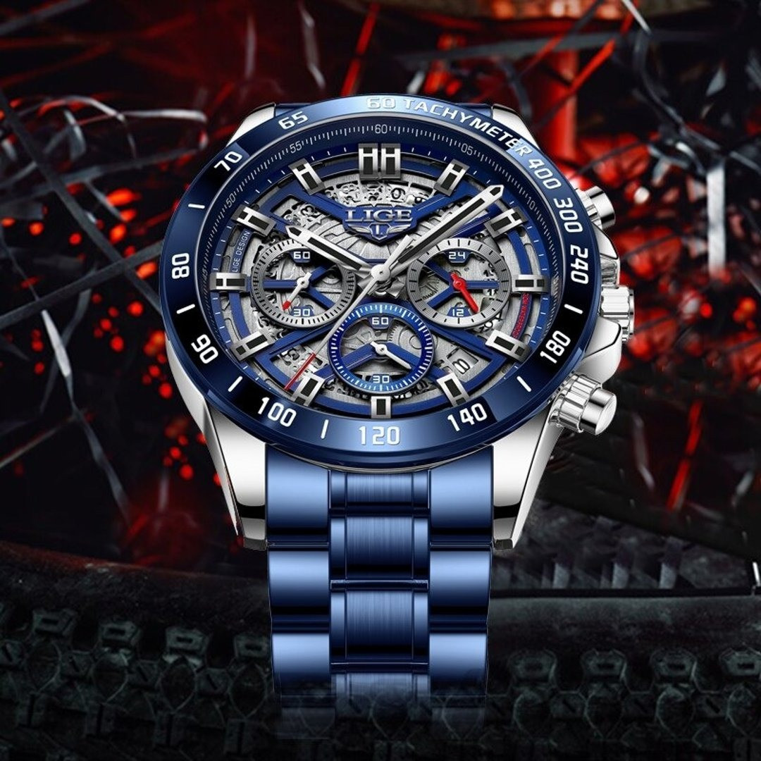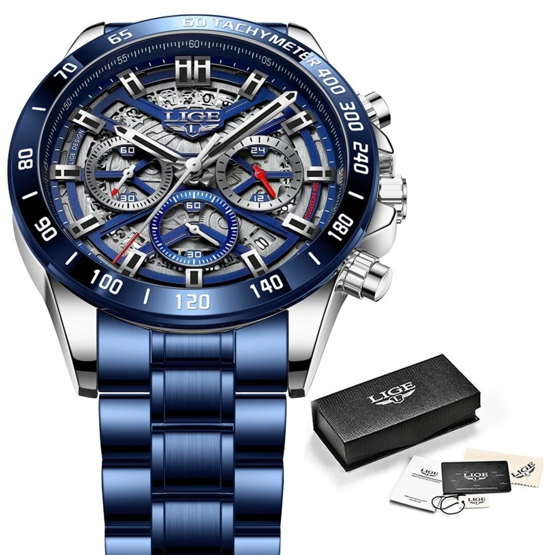 LIGE 8944 New Hollow Watch Men Top Brand Luxury Men Watch Waterproof Sport Quartz Chronograph Wrist Watch Man Relogio Masculino