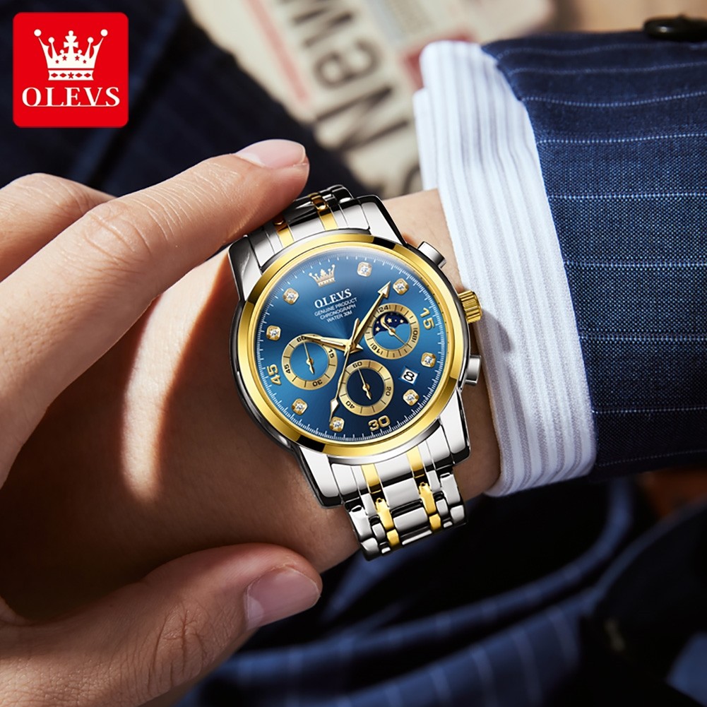 OLEVS 2889 Quartz Watch for Men Chronograph Business Man Watch Waterproof Wristwatch Stainless Steel Luxury Original New Watch